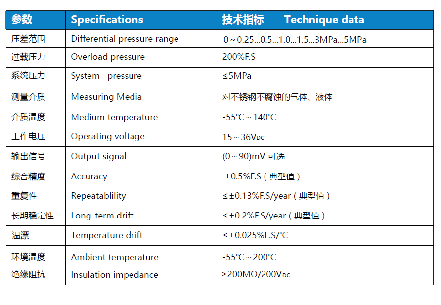 溫差極小,零點溫度補償≤ ± 0.008 % F.S/℃ typ.